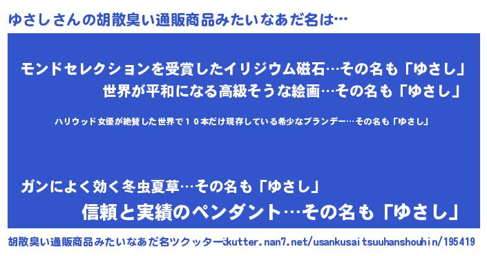 | 意味不明あだ名 | 『住所不定無職ゆさし(84歳)』 |