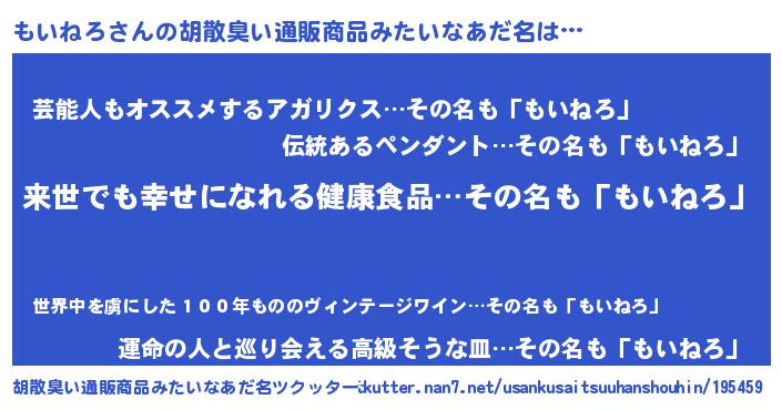 | 意味不明あだ名 | 『永久保存もいねろ』『自称もいねろ』 |