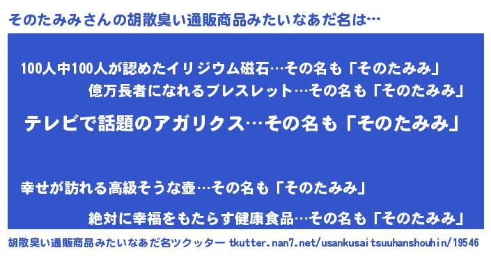 | 欧米人風あだ名 | 『アンジェラ・そのたみみ』 |