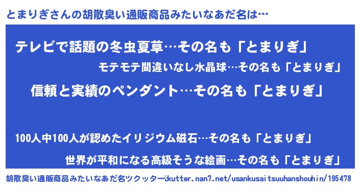 | 意味不明あだ名 | 『とにかく怪しいとまりぎ』 |