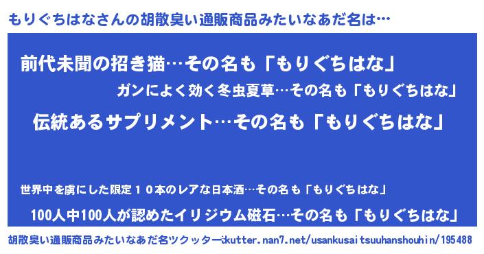 | 意味不明あだ名 | 『とにかく怪しいもりぐちはな』 |