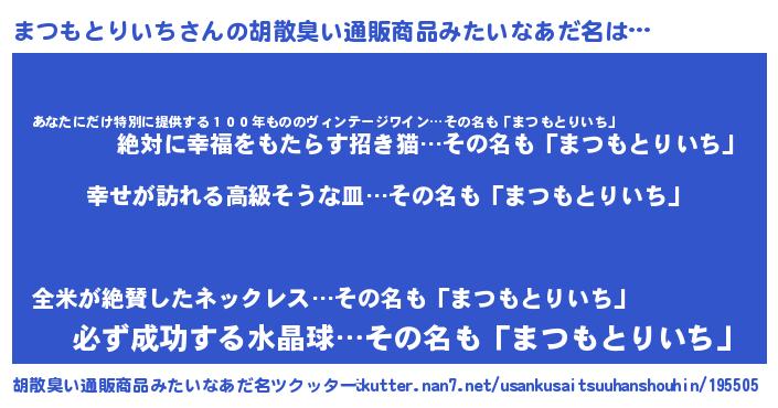 | 肩書あだ名 | 『まつもとりいち国家主席』 |