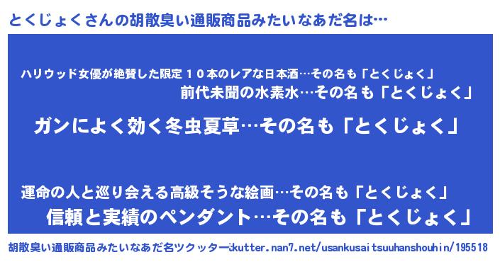 | 意味不明あだ名 | 『自称とくじょく』『永久保存とくじょく』 |