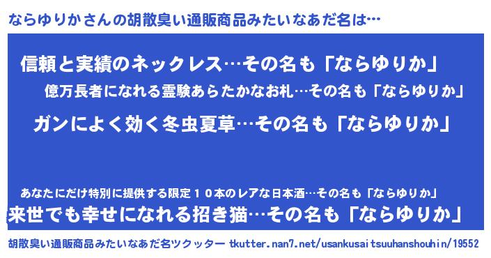 | 肩書あだ名 | 『ならゆりか上級大将』『ならゆりか閣下』 |