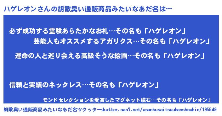 | 意味不明あだ名 | 『ハゲレオンフォーエバー』 |