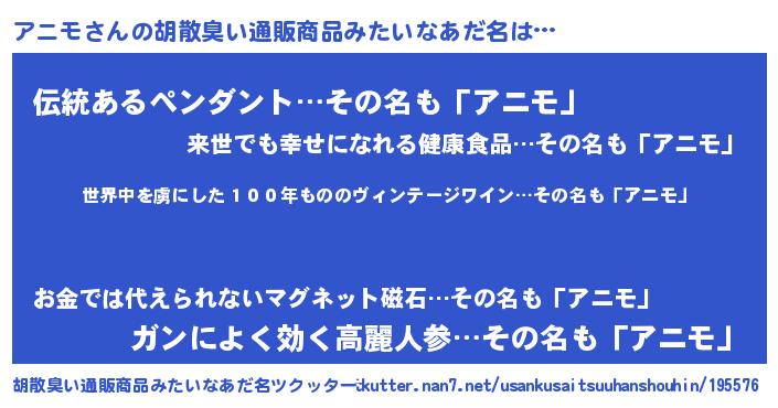 | 意味不明あだ名 | 『住所不定無職アニモ(7歳)』『自称アニモ』 |