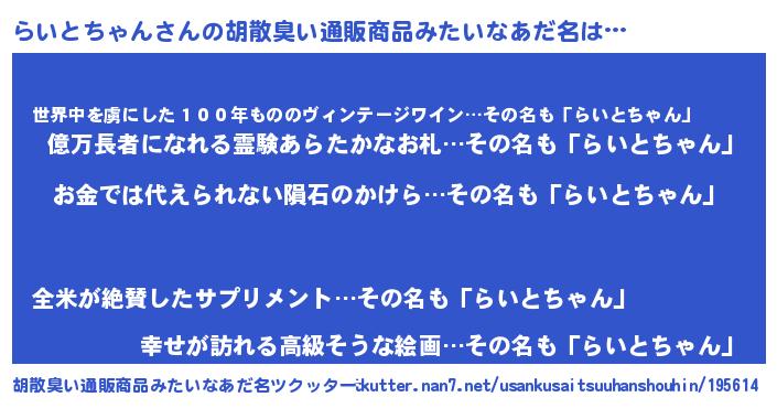 | ヘコむあだ名 | 『なまこ酢』『らいにー』『らいを』 |