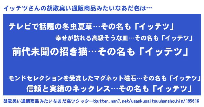 | 意味不明あだ名 | 『永久保存イッテツ』『自称イッテツ』 |