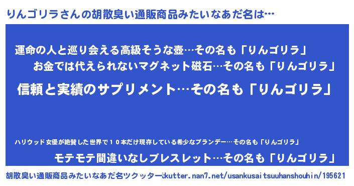 | 意味不明あだ名 | 『とにかく怪しいりんゴリラ』 |