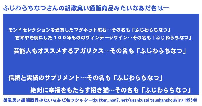 | 意味不明あだ名 | 『自称ふじわらちなつ』 |