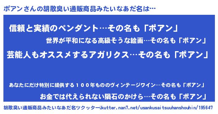 | 意味不明あだ名 | 『自称ポアン』『とにかく怪しいポアン』 |