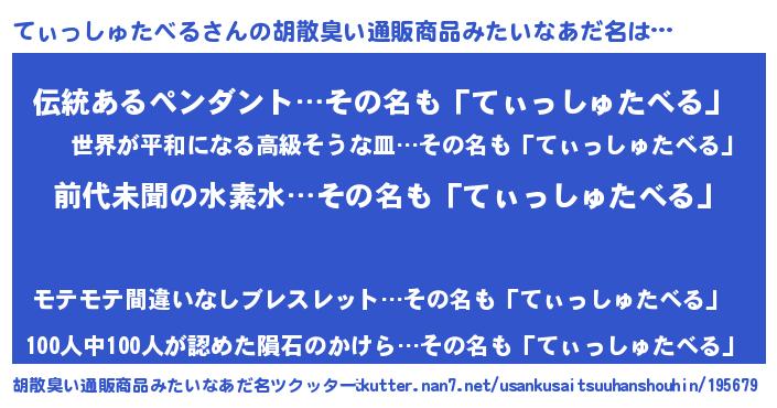 | ヘコむあだ名 | 『てぃっしゅたべる(苦笑)』『てぃっ子』 |