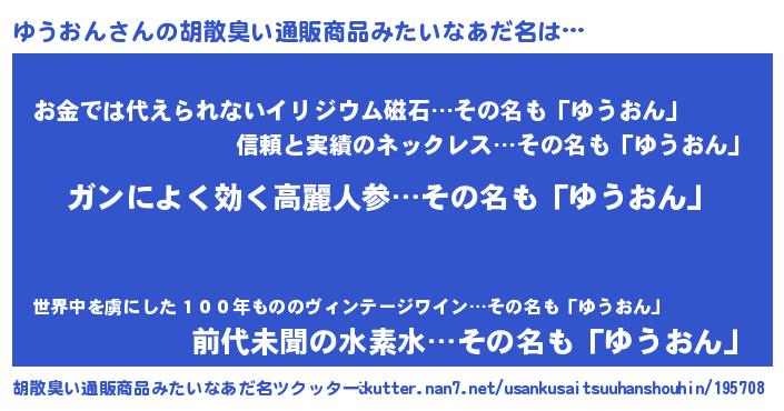 | ヘコむあだ名 | 『ゆうおん(笑)』『ゆう太郎』 |