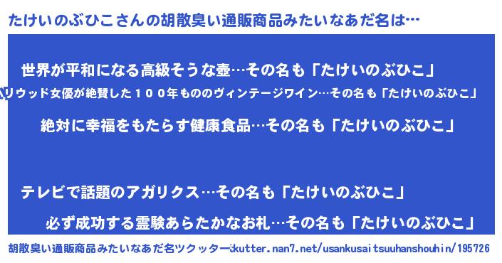 | ヘコむあだ名 | 『たけいのぶひこ(苦笑)』『つくし』 |