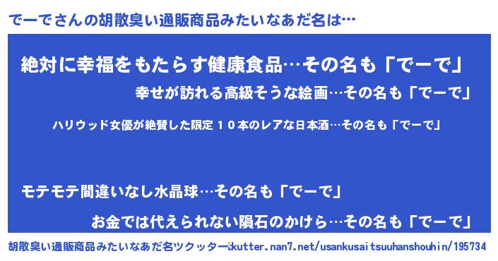 | 意味不明あだ名 | 『住所不定無職でーで(43歳)』 |