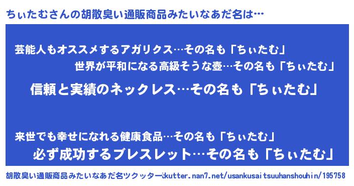 | 女子向けラノベタイトル風あだ名 | 『ちぃたむは平凡を望む』『闇のちぃたむ』 |