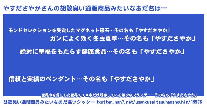 | 男性向けラノベタイトル風あだ名 | 『やすださやかという概念が存在しない退屈な世界 』 |