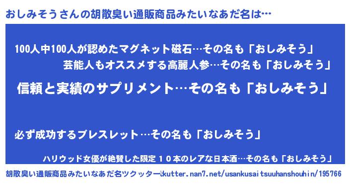| 意味不明あだ名 | 『とにかく怪しいおしみそう』 |