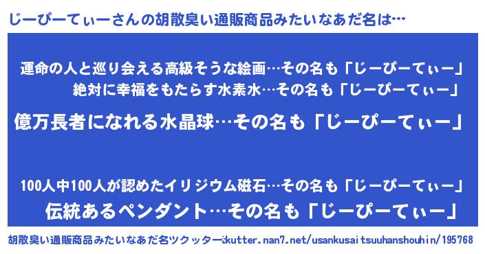 | 意味不明あだ名 | 『ペロリンじーぴーてぃー』 |