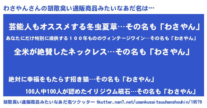 | 恥ずかしいあだ名 | 『ワサリンリン』『ワサヤンデラックス』 |