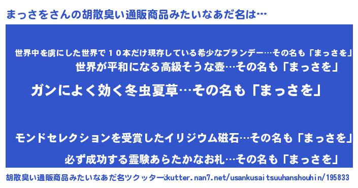 | 意味不明あだ名 | 『自称まっさを』『ペロリンまっさを』 |