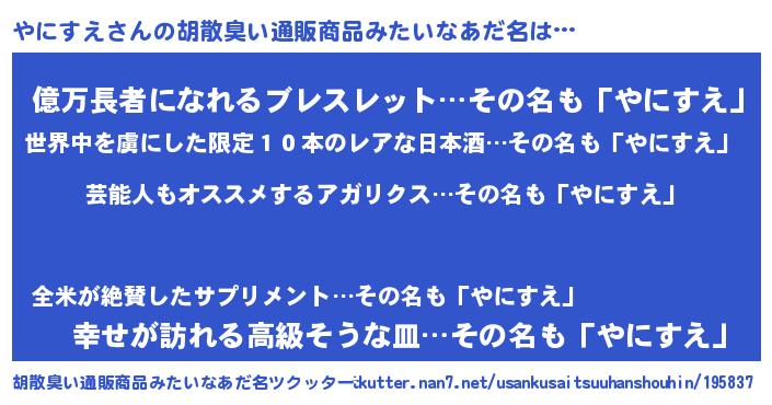 | ヘコむあだ名 | 『やににゅー』『酢こんぶ』 |