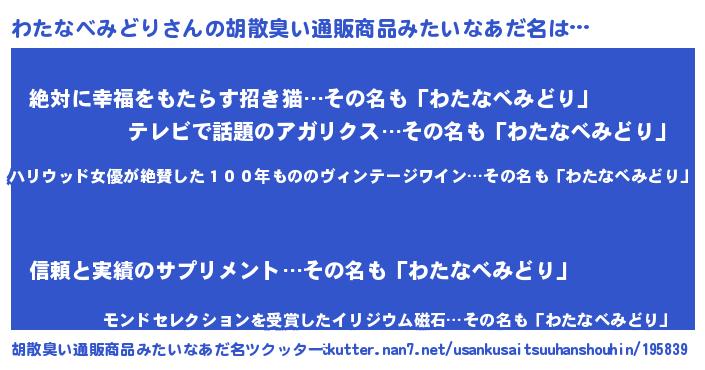 | 意味不明あだ名 | 『住所不定無職わたなべみどり(13歳)』 |