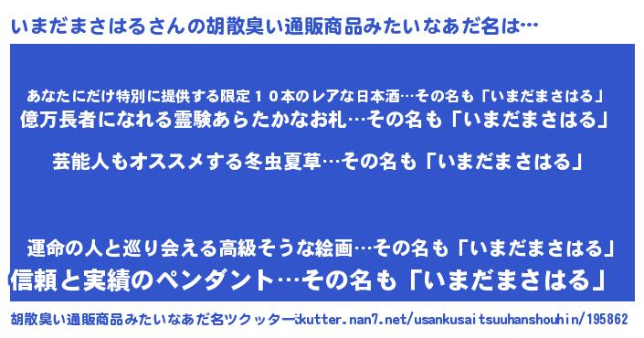 | 意味不明あだ名 | 『自称いまだまさはる』 |