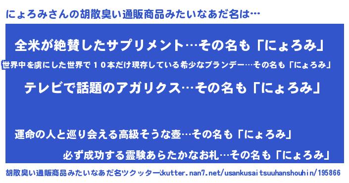 | ヒーロー風カッコイイあだ名 | 『ウルトラ戦士ニョロミ』『幻影騎士ニョ』 |