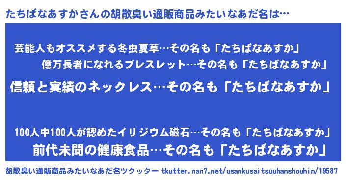 | 男性向けラノベタイトル風あだ名 | 『ダンジョンにたちばなあすかを求めるのは間違っているだろうか』 |