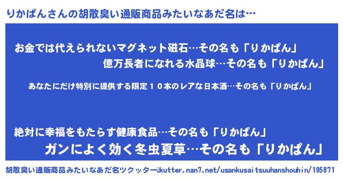 | 意味不明あだ名 | 『住所不定無職りかぱん(53歳)』 |