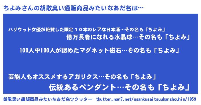 | 欧米人風あだ名 | 『ダニエルちよみ』『アンジェラ・ちよみ』 |