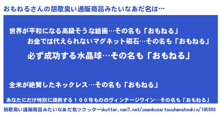 | ヘコむあだ名 | 『おもにゅー』『豆乳』『おもっぺ』 |