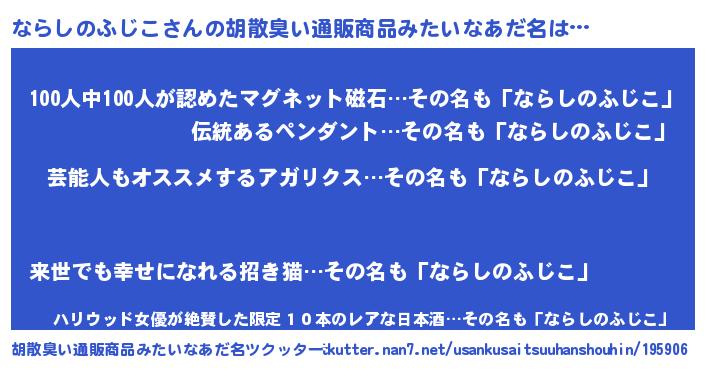 | 意味不明あだ名 | 『自称ならしのふじこ』 |