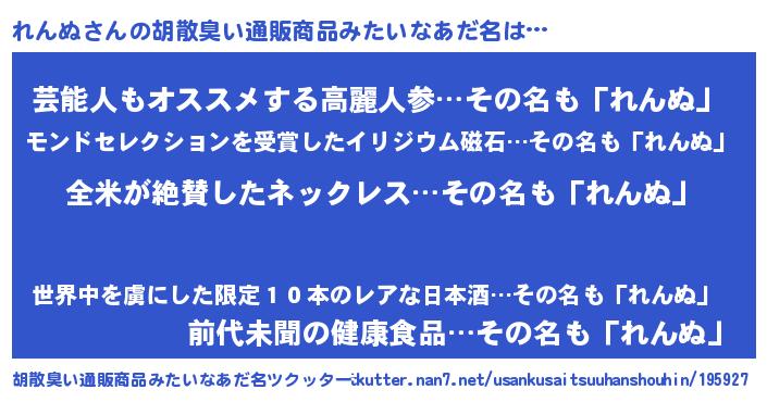 | 意味不明あだ名 | 『とにかく怪しいれんぬ』『自称れんぬ』 |