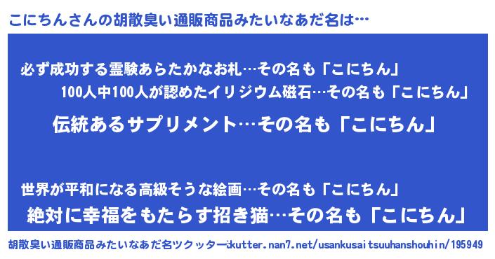 | 意味不明あだ名 | 『とにかく怪しいこにちん』 |