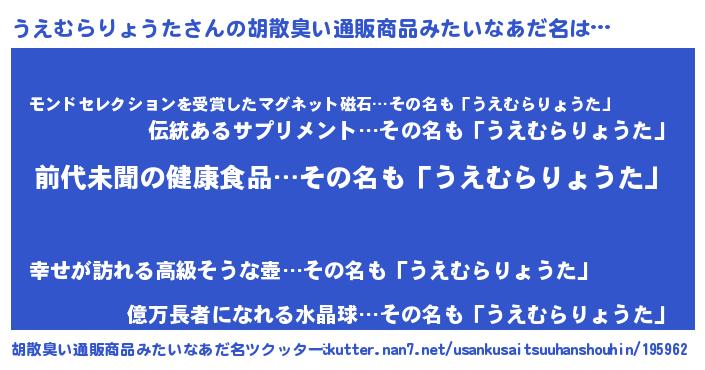 うえむらりょうたさんの胡散臭い通販商品みたいなあだ名をツクッター!
