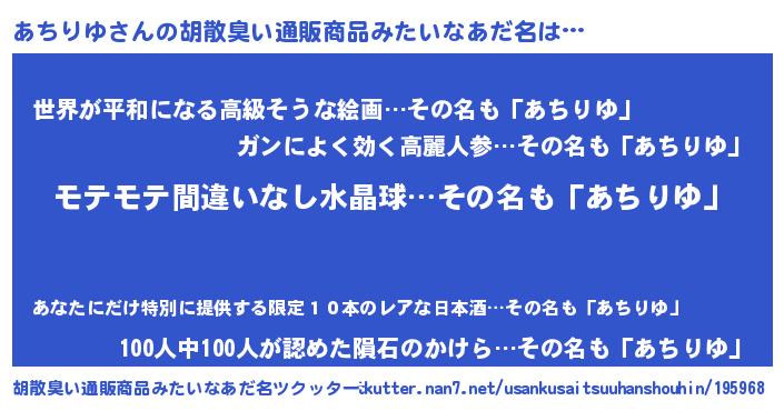 | 意味不明あだ名 | 『ペロリンあちりゆ』『自称あちりゆ』 |