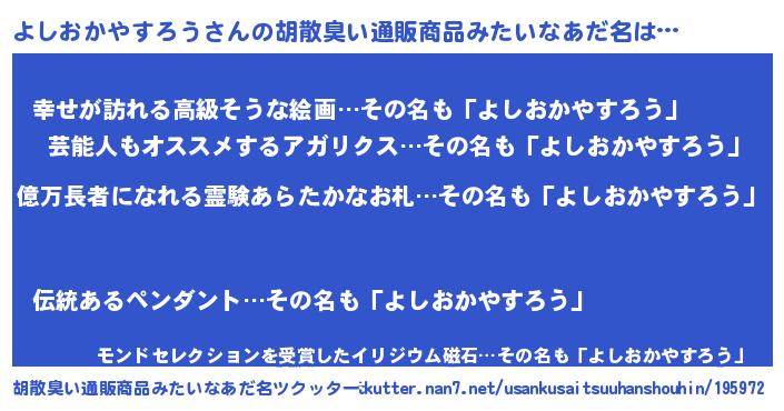 | 恥ずかしいあだ名 | 『プリティーよしおかやすろう』 |