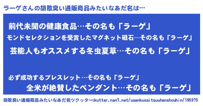 | ヘコむあだ名 | 『ラーゲ(遠い目)』『ラーっぺ』 |