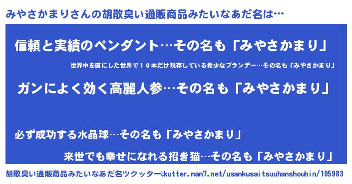 | 意味不明あだ名 | 『自称みやさかまり』 |