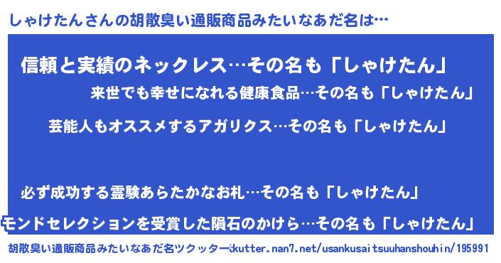 | ヘコむあだ名 | 『しゃっぺ』『しゃけたん(爆)』 |