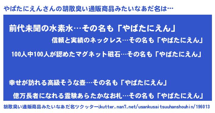 | ヘコむあだ名 | 『やばたにえん(笑)』『やばもー』 |