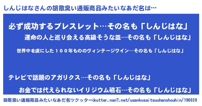| 意味不明あだ名 | 『住所不定無職しんじはな(4歳)』 |
