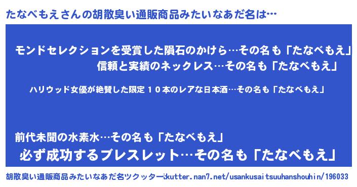 | 欧米人風あだ名 | 『たなべもえ・ステッグマイヤー』 |
