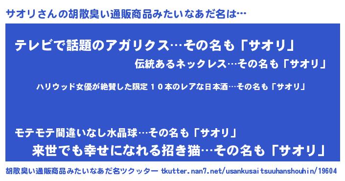 | 料理風あだ名 | 『サオリのカルパッチョ風』 |