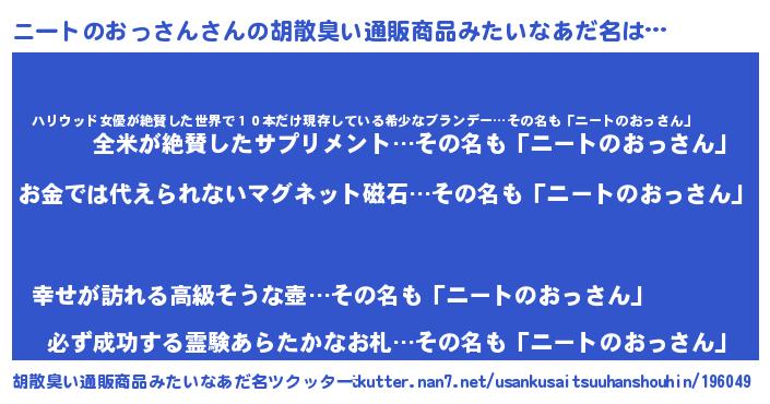 | ヒーロー風カッコイイあだ名 | 『愛の使者ニートのおっさん』 |