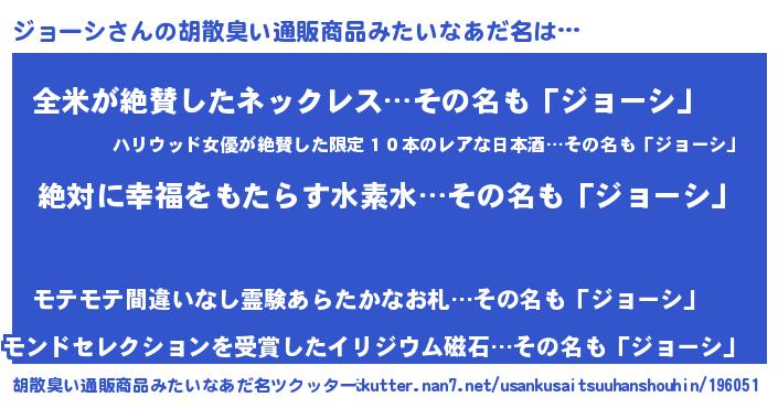 | ヘコむあだ名 | 『ジョーシ(遠い目)』『ジョ太郎』 |
