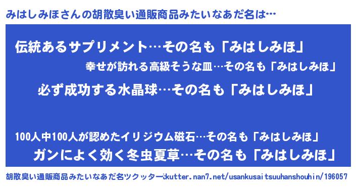 | 意味不明あだ名 | 『ペロリンみはしみほ』『自称みはしみほ』 |