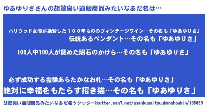 | 男性向けラノベタイトル風あだ名 | 『おまえをオタクにしてやるから、俺をゆあゆりさにしてくれ! 』 |